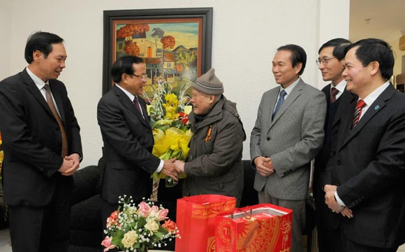 Đến thăm, chúc Tết Giáo sư – Anh hùng lao động Vũ Khiêu, Nhà văn hóa Nguyễn Hữu Ngọc, Giáo sư Trần Vĩnh Diệu, Giáo sư Phan Huy Lê, Bí thư Thành ủy Phạm Quang Nghị đã thân mật thăm hỏi, đàm đạo những câu chuyện xung quanh chuyện văn, chuyện đời, về những công trình nghiên cứu quý báu đóng góp thiết thực cho Thủ đô.