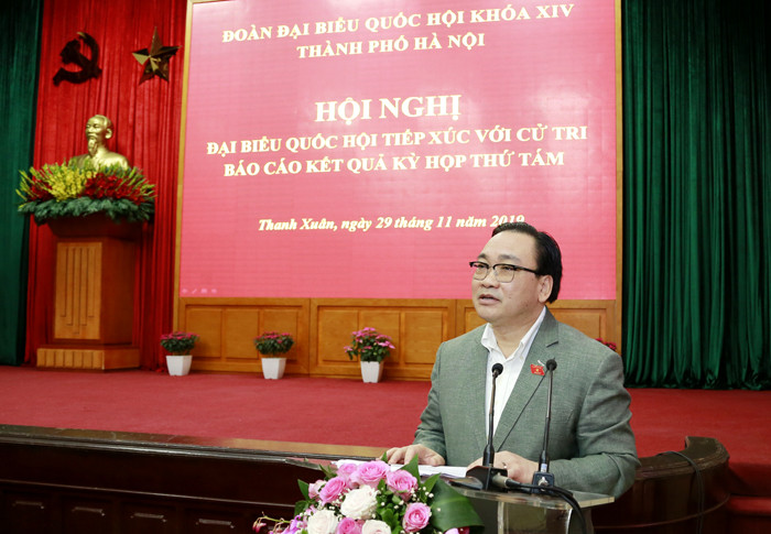 Về một số kiến nghị của cử tri quận Thanh Xuân, Bí thư Thành ủy Hoàng Trung Hải cho biết: Hiện nay, Thành phố có gần 900 nghìn dân sống trong các khu chung cư, chiếm khoảng 13,5% dân số toàn thành phố và xu hướng này còn tiếp tục phát triển. Chính vì thế, Ban Thường vụ Thành ủy đã ban hành Nghị quyết 26 về quản lý nhà chung cư để chỉ đạo giải quyết những khó khăn, vướng mắc. Bí thư Thành ủy cho rằng, những tồn tại, vướng mắc trong quản lý nhà chung cư có trách nhiệm của quản lý nhà nước, chưa nắm bắt và xử lý kịp thời những sai phạm.