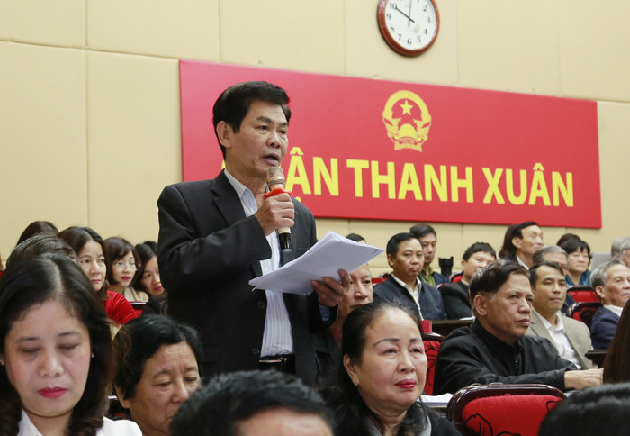 Cử tri quận Thanh Xuân phát biểu tại buổi tiếp xúc
