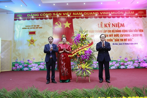 Sáng nay, 23-3, huyện Mỹ Đức đã trang trọng tổ chức Lễ kỷ niệm 80 năm Ngày thành lập Chi bộ Đảng Cộng sản đầu tiên của Đảng bộ huyện (1939-2019) và phát hành cuốn “Bản tin Mỹ Đức”.