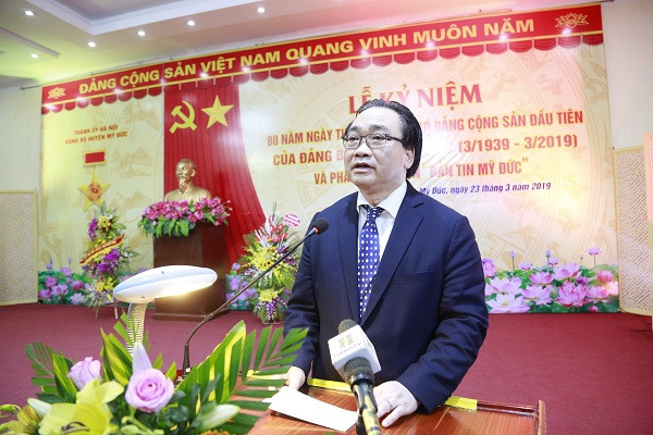 Dự và phát biểu tại buổi lễ, Ủy viên Bộ Chính trị, Bí thư Thành ủy Hà Nội Hoàng Trung Hải khẳng định, lễ kỷ niệm 80 năm Ngày thành lập Chi bộ đầu tiên của Đảng bộ huyện Mỹ Đức là sự kiện chính trị quan trọng, có ý nghĩa sâu sắc; là dịp ôn lại truyền thống cách mạng hào hùng địa phương - vùng đất giàu truyền thống lịch sử, văn hóa.