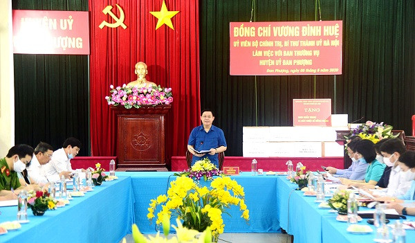 Bí thư Thành ủy Vương Đình Huệ giao Ban cán sự đảng UBND TP Hà Nội chỉ đạo các sở, ngành liên quan xem xét, giải quyết theo thẩm quyền các kiến nghị của huyện Đan Phượng; tạo điều kiện tốt nhất thúc đẩy phát triển kinh tế - xã hội của huyện, góp phần giúp huyện sớm hoàn thành Đề án phát triển thành quận trong thời gian tới.