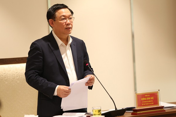 Bí thư Thành ủy Hà Nội Vương Đình Huệ phát biểu tại buổi làm việc