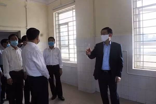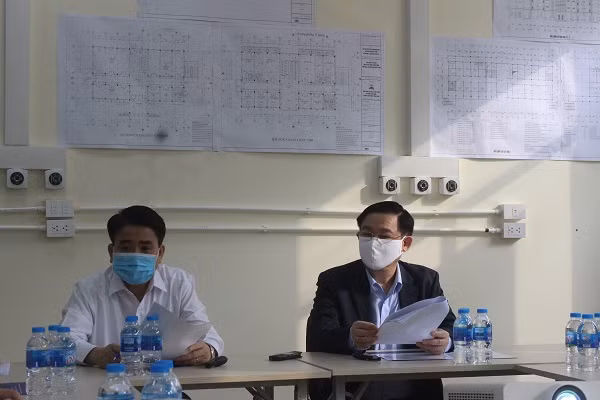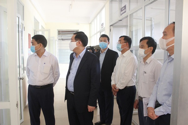 ANTD.VN - Sáng nay, 25-3, Ủy viên Bộ Chính trị, Bí thư Thành ủy Hà Nội Vương Đình Huệ cùng Ủy viên Trung ương Đảng, Chủ tịch UBND TP Nguyễn Đức Chung đã kiểm tra dự án thi công Bệnh viện dã chiến Mê Linh, nơi sẽ tiếp nhận điều trị các bệnh nhân nhiễm Covid-19. Đây là công trình được thành phố chỉ đạo hoàn thành chỉ trong 7 ngày.