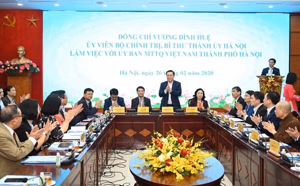Bí thư Thành ủy Vương Đình Huệ làm việc với Ủy ban MTTQ Việt Nam thành phố Hà Nội