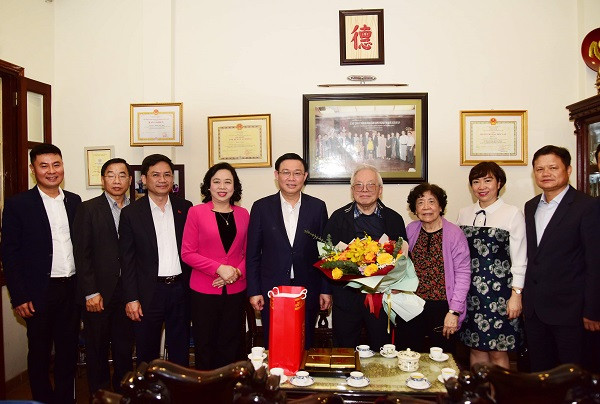 Thăm hỏi, tặng hoa chúc mừng hai vị chuyên gia y tế đầu ngành, Bí thư Thành ủy Vương Đình Huệ thay mặt Đảng bộ, chính quyền và nhân dân Thủ đô trân trọng cảm ơn những đóng góp, cống hiến của các giáo sư cho công tác chăm sóc, bảo vệ sức khoẻ nhân dân cả nước nói chung, Hà Nội nói riêng.