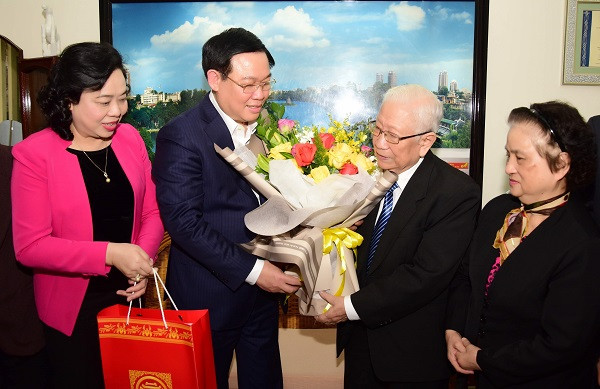 Chiều nay, 26-2, nhân kỷ niệm 65 năm Ngày Thầy thuốc Việt Nam (27-2-1955/27-2-2020), Ủy viên Bộ Chính trị, Bí thư Thành ủy Hà Nội Vương Đình Huệ đã đến thăm, chúc mừng GS.TS Phạm Gia Khải và GS.TS Lê Đức Hinh - hai tấm gương tiêu biểu của ngành y tế Việt Nam. Ủy viên Trung ương Đảng, Phó Bí thư Thường trực Thành ủy Ngô Thị Thanh Hằng cùng đi.