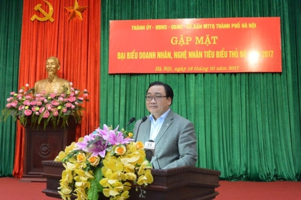 Chiều nay, 18-10, Thành uỷ- HĐND- UBND-Uỷ ban MTTQ Việt Nam TP Hà Nội đã tổ chức gặp mặt đại biểu doanh nhân, nghệ nhân tiêu biểu Thủ đô năm 2017. Uỷ viên Bộ Chính trị, Bí thư Thành uỷ Hoàng Trung Hải chủ trì.