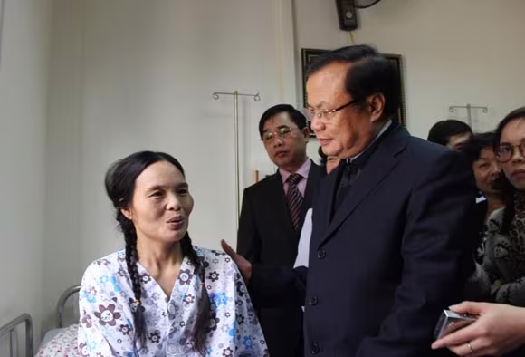 Bí thư Thành ủy Phạm Quang Nghị đã tới tận giường bệnh để thăm hỏi, động viên và tặng quà hai mẹ con bệnh nhân. Chia vui với gia đình bệnh nhân, đồng chí Phạm Quang Nghị chúc 2 mẹ con chóng bình phục hoàn toàn, trở lại với cuộc sống hàng ngày.