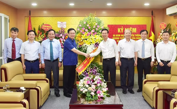 Nhân kỷ niệm 90 năm Ngày truyền thống ngành Tuyên giáo của Đảng (1/8/1930-1/8/2020), chiều nay, 31-7, Ủy viên Bộ Chính trị, Bí thư Thành ủy Hà Nội Vương Đình Huệ đã tới thăm, chúc mừng Ban Tuyên giáo Trung ương.