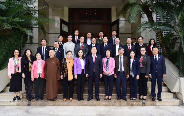 Tân Trưởng đoàn ĐBQH Thành phố Vương Đình Huệ chụp ảnh chung với các ĐBQH trong đoàn