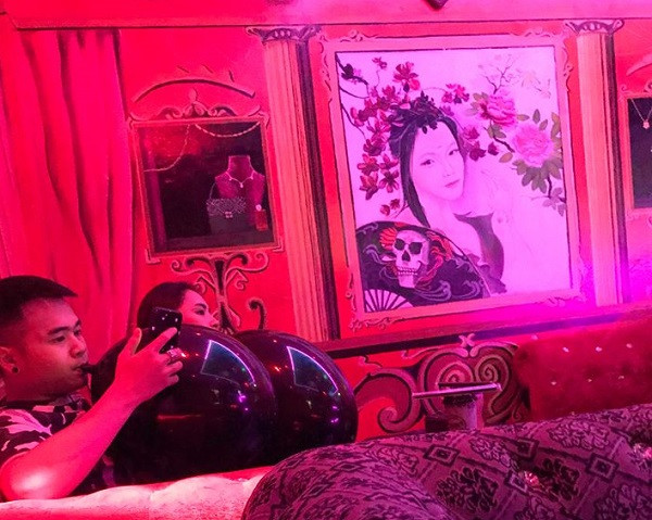 Hình ảnh khách hút bóng cười trong quán được chủ cơ sở đăng tải công khai trên trang mạng xã hội