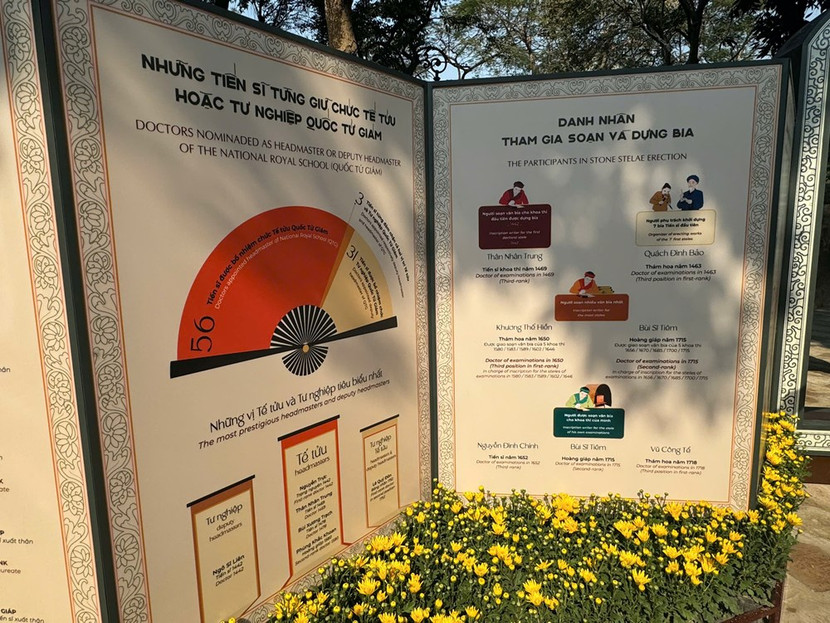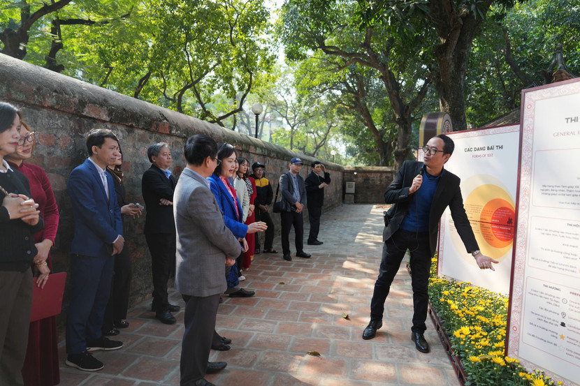 | Trưng bày khai thác giá trị nội dung và nghệ thuật của toàn bộ 82 bia Đề danh Tiến sĩ tại Văn Miếu - Quốc Tử Giám theo 4 chủ đề chính: Chiêu mộ hiền tài: giới thiệu một số nét chính về giáo dục khoa cử Nho học của nước ta (ảnh: Huy Phạm) |