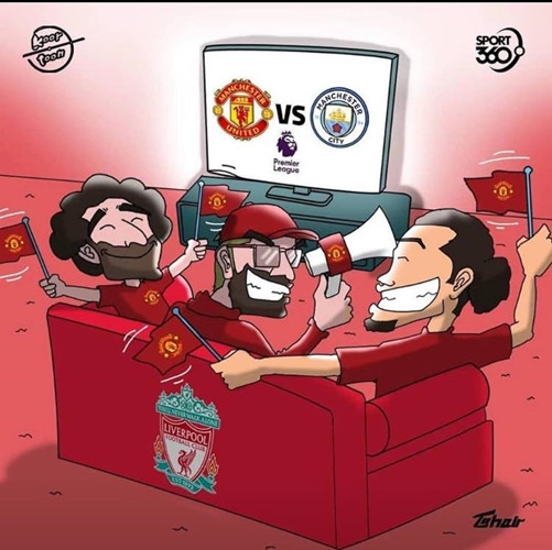Biếm họa: Salah và Mane khoác áo M.U, rầu rĩ ngồi nhìn Man City qua mặt