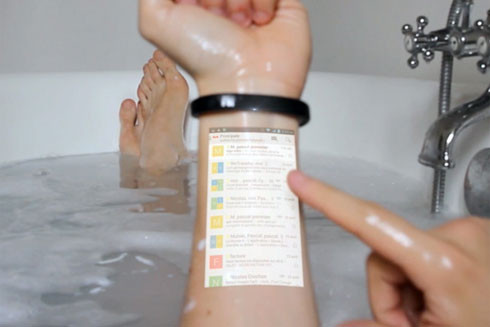 Các nhà khoa học đang phát triển công nghệ này trên các mạch điện tử dẻo, có khả năng uốn cong hay kéo giãn để tích hợp với làn da trên cánh tay và bàn tay chúng ta. Và khi đó, cánh tay sẽ trở thành một màn hình cảm ứng thông minh và tiện dụng, có thể sử dụng nó như một chiếc đồng hồ, điện thoại hay máy tính, thậm chí là một chiếc máy chiếu mini.