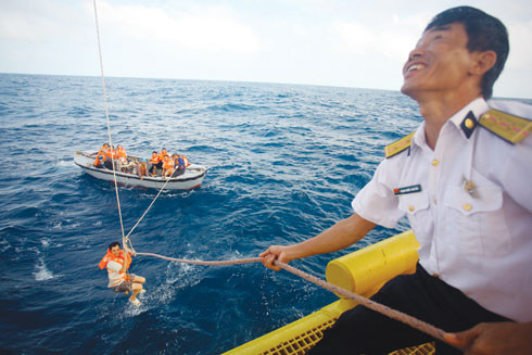 Rồi chúng tôi lại nhường giường cho các chiến sỹ ra nhà giàn thay ca đợt này. Càng ra xa, sóng càng dữ dội, thế nhưng những người lính trên tàu HQ-624 vẫn luôn tươi rói. Có lẽ trong các lực lượng, lính hải quân là người cười nhiều nhất. Càng khó khăn họ lại càng lạc quan, không bao giờ do dự. Không chỉ có vậy, đến bữa ăn, các anh tới từng cabin xem ai trong các phóng viên chúng tôi say sóng để đưa từng quả trứng, cái bánh mỳ và động viên chúng tôi cố ăn để lấy sức.