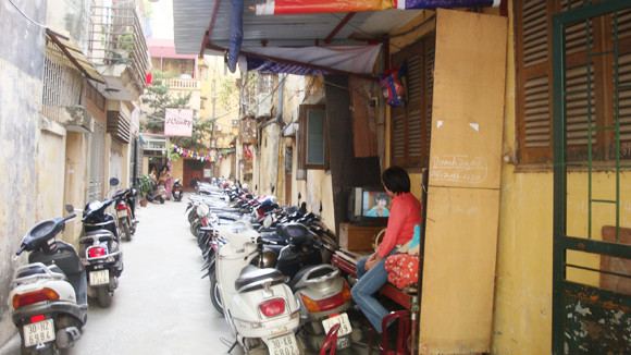 Ông Bình cho biết, từ cuối năm 2009, một số cán bộ tổ dân phố đang sinh sống tại khu tập thể đã ngang nhiên làm cổng, ngăn đường đi duy nhất vào khu tập thể làm điểm trông giữ xe đạp, xe máy. Thậm chí, để phục vụ cho điểm trông giữ xe này, những người đứng ra thành lập còn cho dựng lều tạm làm nơi ngủ, nghỉ cho nhân viên trông xe ngay lối đi vào ngõ, tạo ra hình ảnh nhếch nhác, phản cảm, ảnh hưởng đến cảnh quan chung của khu dân cư. Điều đáng nói, trong bãi gửi xe lúc nào cũng có hàng chục chiếc xe máy gửi cả ngày lẫn đêm, song phần lớn trong số đó là xe của người dân không sinh sống trong khu vực.