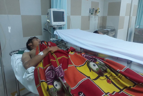 Một công nhân bị thương được cấp cứu tại bệnh viện - Ảnh: XUÂN AN