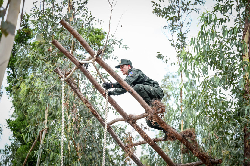 Chưa kịp nghỉ ngơi, tất cả bước ngay vào buổi rèn luyện thể lực khiến không ít người choáng váng vì cường độ vượt ngoài sức tưởng tượng. Từng động tác gập, chống, kéo, nhảy… như muốn vắt kiệt năng lượng. Nhưng đó mới chỉ là màn dạo đầu cho thử thách khắc nghiệt phía trước: bài huấn luyện vượt liên hoàn vật cản và chiến thuật tác chiến trên địa hình rừng núi dưới sự chỉ huy của Đại uý Nguyễn Đức Duân (Phó trưởng ban huấn luyện kỹ chiến thuật quân sự và tác chiến tổng hợp).