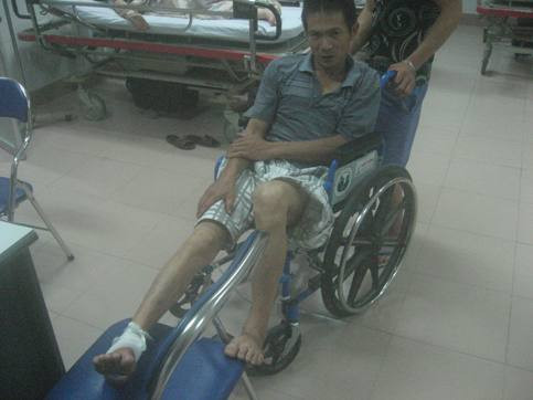 Rất may, nhóm thanh niên thôn Thọ Khang đã kịp phát hiện sự việc bất thường, bỏ chạy tán loạn nên không ai bị thương tích. Đúng lúc đó, anh Nguyễn Viết Dân, 42 tuổi, nghe tiếng huyên náo chạy lại gần. “Sao chúng mày đánh đấm nhau thế”. Vừa nói, anh Dân cúi xuống nhặt viên gạch để dọa ném đám đối tượng lạ mặt. “Đoàng”, một trong tám đối tượng rút ngay khẩu súng, chĩa về hướng anh Dân bóp cò. Viên đạn xuyên qua bàn chân phải. Chứng kiến thái độ hung tợn của đám côn đồ, không người dân thôn Thọ Khang nào dám can thiệp. Cả 8 đối tượng lên xe máy phóng đi.