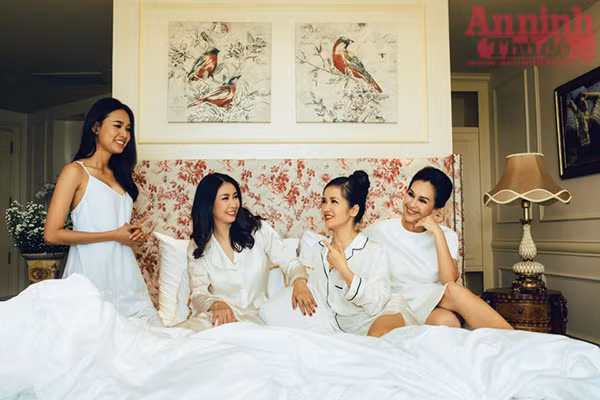 Nhưng thật bất ngờ bởi trên trang cá nhân của cô xuất hiện những hình ảnh trong bộ đồ ngủ gợi cảm cùng 3 mỹ nhân khác.