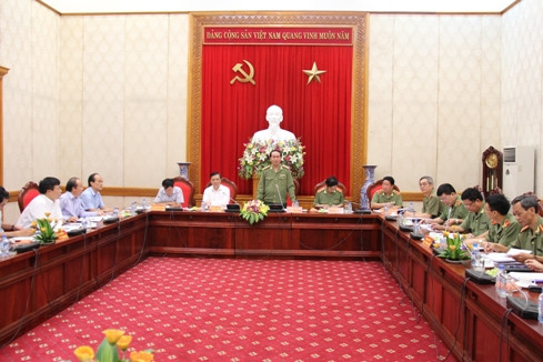 Đại tướng Trần Đại Quang, Ủy viên Bộ Chính trị, Bộ trưởng Bộ Công an; đồng chí Đinh Tiến Dũng, Ủy viên Trung ương (TW) Đảng, Bộ trưởng Bộ Tài chính đồng chủ trì buổi làm việc.