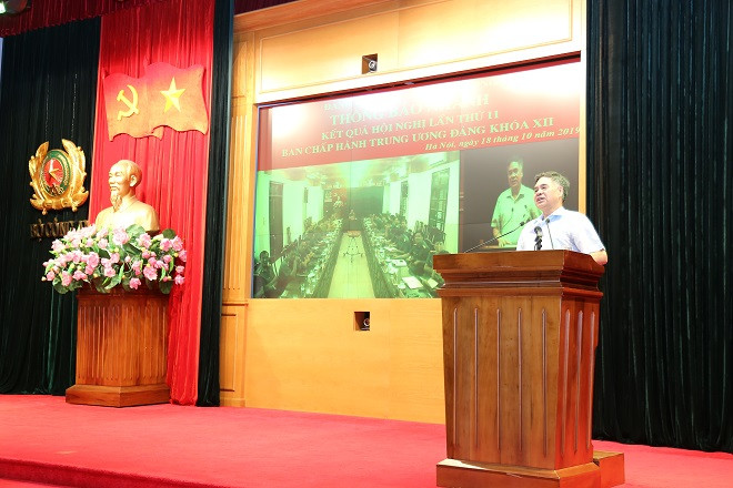Tại Hội nghị, PGS.TS Nguyễn Viết Thông, Tổng Thư ký Hội đồng Lý luận Trung ương đã thông báo nhanh tới các đại biểu các nội dung và kết quả quan trọng của Hội nghị lần thứ 11, Ban Chấp hành Trung ương Đảng khóa XII. Đồng thời, Thiếu tướng Bùi Quang Hải, Phó Chánh Văn phòng Bộ Công an thông báo về tình hình an ninh, trật tự 9 tháng đầu năm 2019 cho cán bộ, lãnh đạo chủ chốt trong CAND.