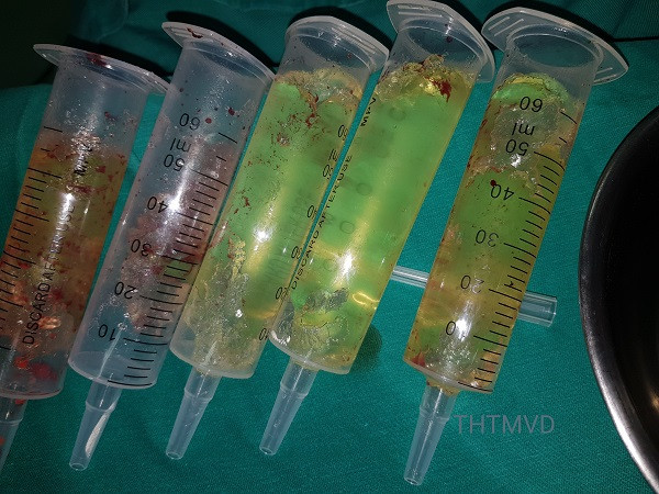 Kíp mổ hút làm sạch tổ chức silicone lỏng tràn ra ngoài túi nâng ngực trong ngực bệnh nhân