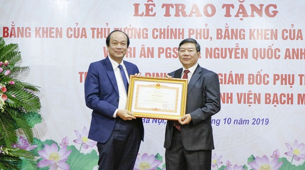 Bộ trưởng - Chủ nhiệm VPCP Mai Tiến Dũng trao Bằng khen của Thủ tướng cho PGS.TS Nguyễn Quốc Anh