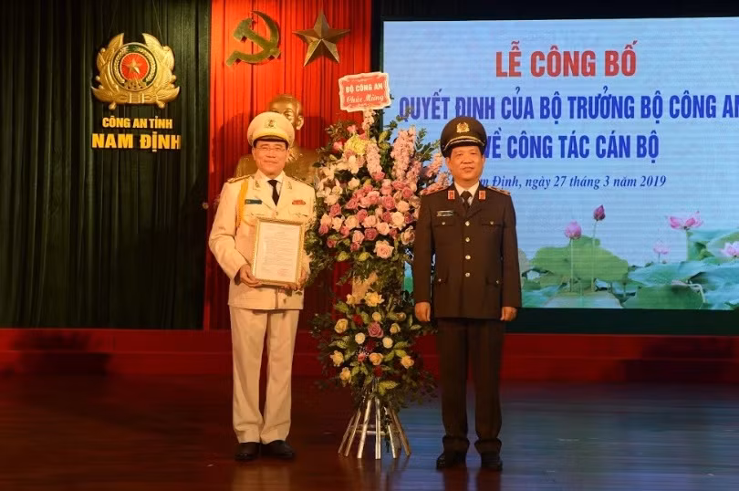 Được sự ủy quyền của Bộ trưởng Bộ Công an, Trung tướng Nguyễn Văn Sơn đã công bố và trao Quyết định của Bộ trưởng Bộ Công an bổ nhiệm Đại tá Phạm Văn Long, giữ chức vụ Giám đốc Công an tỉnh Nam Định.