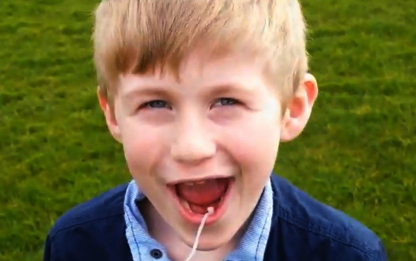 Ông bố Malcolm Swan đã buộc dây vào giữa chiếc máy bay điều khiển từ xa và chiếc răng sắp gẫy của cậu bé Adam, 8 tuổi, sau đó điều khiển chiếc máy bay bay lên cao. Tất nhiên, chiếc răng đã được đã được nhổ lên ngay sau đó.