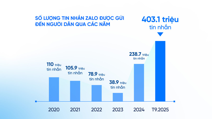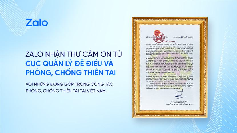 Tính đến tháng 9/2025, Zalo đã phối hợp cùng Cục Quản lý đê điều và Phòng, chống thiên tai gửi ra gần 1 tỷ tin nhắn tới người dân trên cả nước trong các thời điểm thiên tai, bão lũ, thời tiết khắc nghiệt.