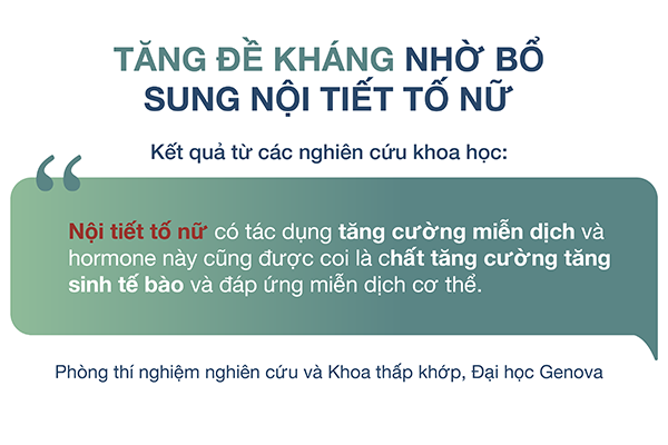 Một nghiên cứu được thực hiện bởi nhóm nhà khoa học Ý tại Phòng thí nghiệm nghiên cứu và Khoa thấp khớp, Đại học Genova, cũng chỉ ra rằng nội tiết tố nữ estrogen có tác dụng tăng cường miễn dịch và hormone này cũng được coi là chất tăng cường tăng sinh tế bào và đáp ứng miễn dịch cơ thể.