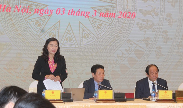 Thứ trưởng Bộ Tài chính Vũ Thị Mai trả lời tại buổi họp báo Chính phủ