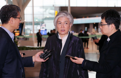 Ngoại trưởng Hàn Quốc Kang Kyung-wha trả lời phóng viên tại sân bay Incheon, trước khi tới Mỹ.