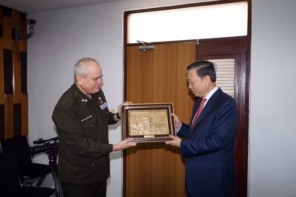 Bộ trưởng Tô Lâm tặng quà Giám đốc Bệnh viện CIMEX Cuba.