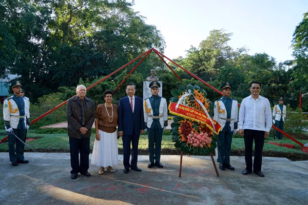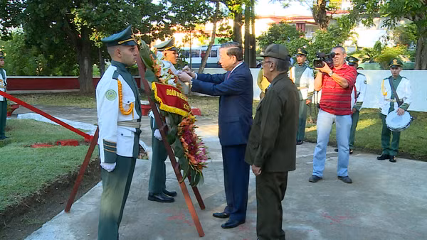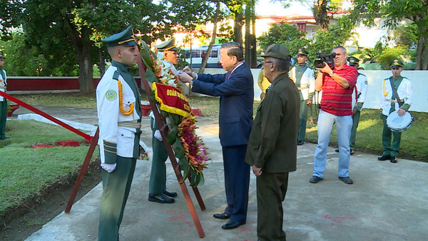 Bộ trưởng Tô Lâm đặt vòng hoa tại Tượng đài Hồ Chí Minh ở Cuba.