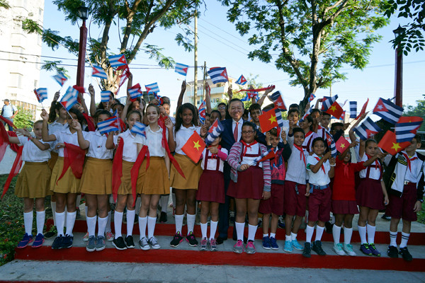 Bộ trưởng Tô Lâm trò chuyện với người dân sống gần khu vực tượng đài, thăm hỏi, nói chuyện thân mật với Hội hữu nghị Việt Nam - Cuba và các cháu học sinh Cuba.