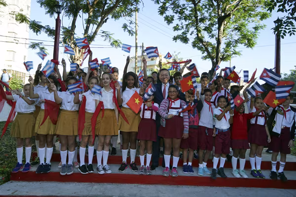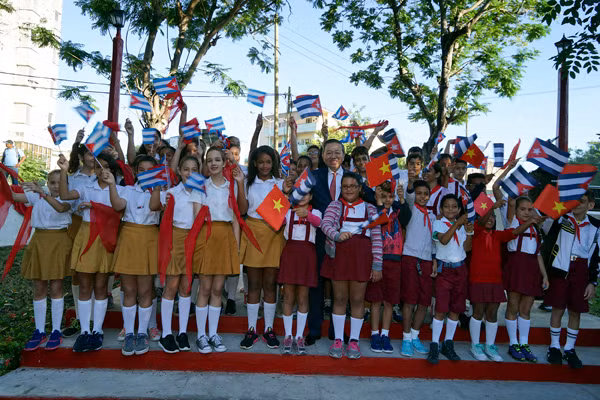 Bộ trưởng Tô Lâm cũng đã trò chuyện với người dân sống gần khu vực Tượng đài, thăm hỏi, nói chuyện thân mật với Hội hữu nghị Việt Nam - Cuba và các cháu học sinh Cuba.