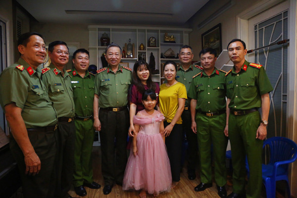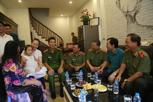 Tại các gia đình liệt sỹ Nguyễn Danh Phương, nguyên Cán bộ Phòng CSGT - CATP Hà Nội; Thương binh Lê Thanh Hùng, Phó trưởng CAP Phương Canh, quận Nam Từ Liêm; thương binh Vũ Thái Sơn, Đội trưởng Đội Cảnh sát kinh tế - CAQ Hai Bà Trưng, đồng chí Bộ trưởng Bộ Công an đã thăm hỏi, động viên và tặng quà thân nhân liệt sỹ và các gia đình thương binh.