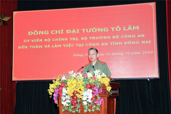 Tại buổi làm việc, Bộ trưởng Tô Lâm đã ghi nhận, đánh cao những kết quả mà Công an tỉnh Đồng Nai đạt được trong thời gian qua trên các mặt công tác. Công an tỉnh Đồng Nai đã kịp thời tham mưu với cấp ủy, chính quyền các cấp ban hành các chủ trương, giải pháp phù hợp để chỉ đạo công tác bảo đảm an ninh chính trị, trật tự an toàn xã hội trên địa bàn.