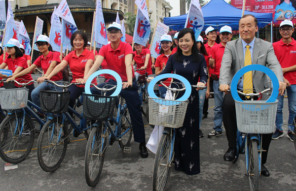 Bộ trưởng Bộ Y tế cùng các đại biểu tham gia đạp xe để lan tỏa thông điệp phòng chống bệnh đái tháo đường