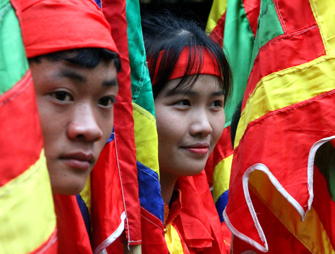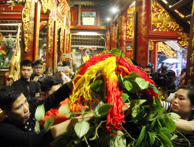 Bỏ tục 'cướp giò hoa tre', người dân kiên nhẫn xếp hàng xin 'lộc' Thánh Gióng