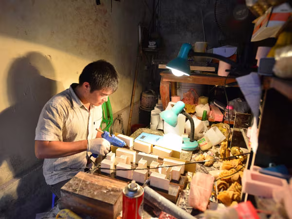 Vừa miệt mài với những chiếc khuôn tinh tế, Chiến vừa chia sẻ dự định về những mẫu son thuần Việt, hoàn toàn của người Việt chế tạo với chất lượng không thua kém các mẫu son hàng hiệu với một cái giá hợp lý dành cho người Việt.