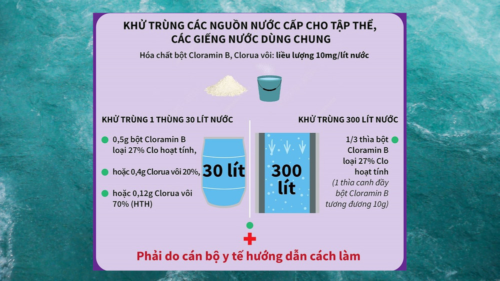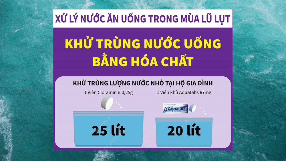 ANTD.VN - Trong trường hợp không có nước sạch và nước mưa, người dân có thể lấy nước ngập nhưng phải xử lý theo đúng quy trình trước khi sử dụng để phòng tránh dịch bệnh. Ngành y tế phối hợp chặt chẽ với chính quyền địa phương để vận động, hướng dẫn nhân dân dọn vệ sinh kết hợp với xử lý nước và vệ sinh môi trường.