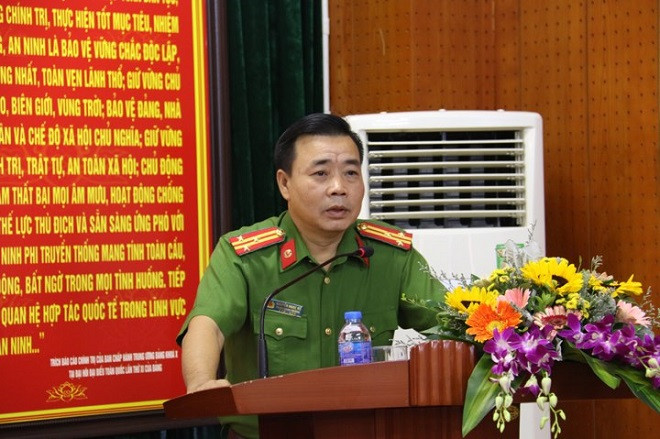 Thượng tá Nguyễn Ngọc Mẽ, Trung đoàn trưởng Trung đoàn CSCĐ phát biểu khai mạc lớp tập huấn