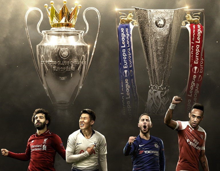 Trận chung kết Europa League năm nay giữa Arsenal và Chelsea sẽ diễn ra trên sân Baku ở Azerbaijan, vào 2h00 sáng ngày 30-5. Ba ngày sau đó, trận chung kết Champions League giữa Liverpool và Tottenham sẽ diễn ra trên sân Wanda Metropolitano ở Madrid, Tây Ban Nha vào 2h00 sáng ngày 2-6. Tất cả giờ thi đấu đều tính theo giờ Việt Nam.