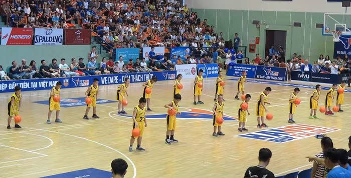 Một tiết mục dễ thương của các em nhỏ tới từ Trung tâm thể thao City Sports. Bên cạnh đó, vào giờ nghỉ giữa các hiệp thi đấu, BTC cũng đem đến nhiều trò chơi tương tác để khán giả có được các phần quà lưu niệm liên quan đến giải VBA như áo, mũ, bóng…