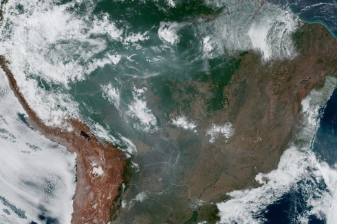 Ảnh chụp từ vệ tinh rừng nhiệt đới Amazon ngày 21-8-2019 (Ảnh NOAA)