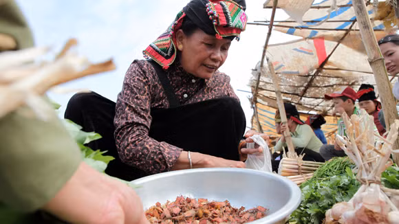 Ngồi bên góc chợ Hát Lót bắc cái bếp tạm bằng 3 hòn đá, vừa trò chuyện với cô gái Thái bán côn trùng, vừa tự tay thoăn thoắt đảo “tôm bay” (châu chấu hoặc cào cào) thấy cuộc sống thú vị làm sao. Cô bán hàng chuyện cứ rôm rả giòn tan trong tiếng cười mộc mạc. Bất chợt, mùi thơm thốc vào khứu giác, cô nhẹ nhàng nhắc nhở, rằng món ăn đã được rồi, nhấc chảo ra đi. Đĩa “tôm bay” thơm nức cộng với rượu ngô nồng cay. Dân ở dưới xuôi lên, ai cũng phải công nhận cái kiểu ăn này nó đưa chén ghê thật. Đĩa dế ở chợ bán với giá 20.000 đồng/ đĩa, cào cào, bọ xít cũng thế. Rẻ đấy, nhưng muốn ăn nhiều cũng không dễ. Mỗi ngày, người dân bản, ai nhiều thì bắt được vài cân bọ xít, vài lạng cào cào, dế mèn, chứ không có nhiều.